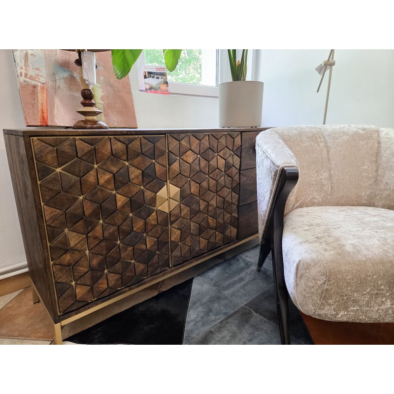 KOMODA Z 3 SZUFLADAMI I 2 DRZWIAMI WYKONANA Z DREWNA MANGO I METALU.