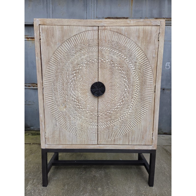 RZEŹBIONA SZAFA Z DREWNA MANGO Z METALOWĄ PODSTAWĄ