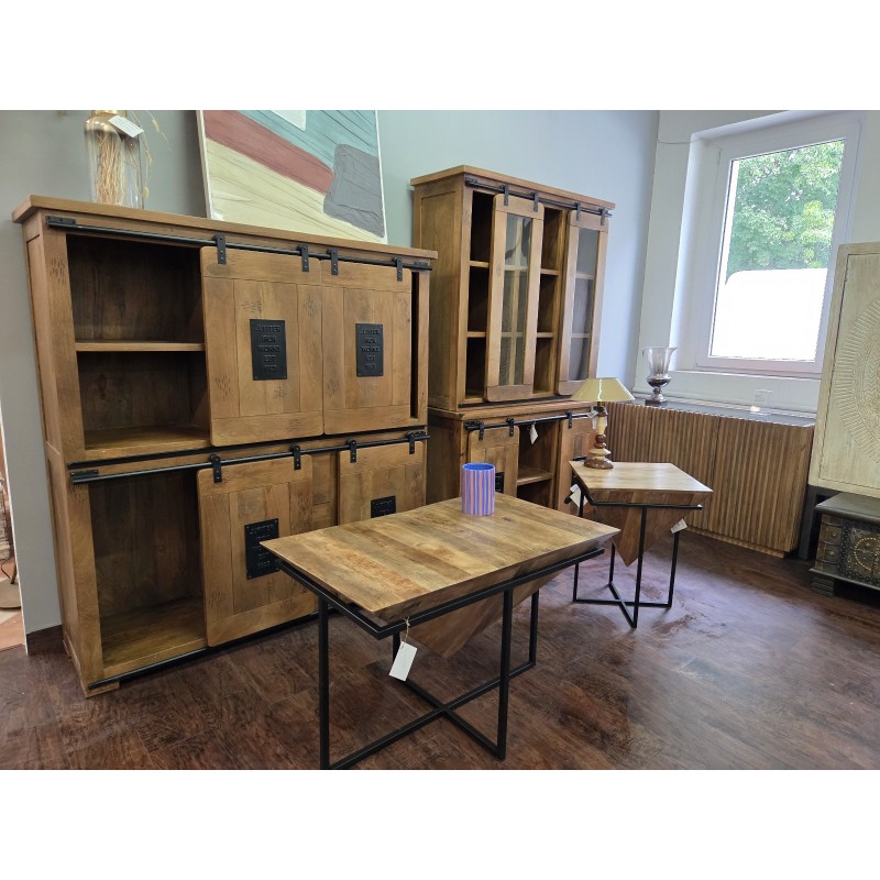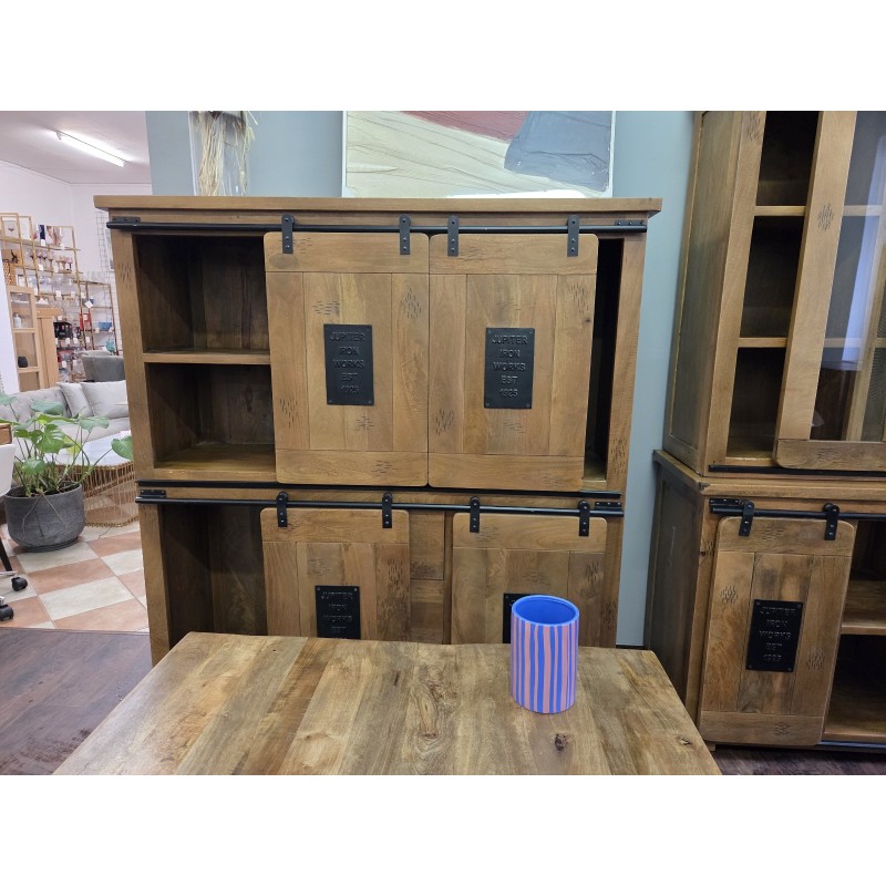 Szafka z drewna mango w stylu industrialnym z 4 drzwiami i 3 szufladami z metalowymi detalami