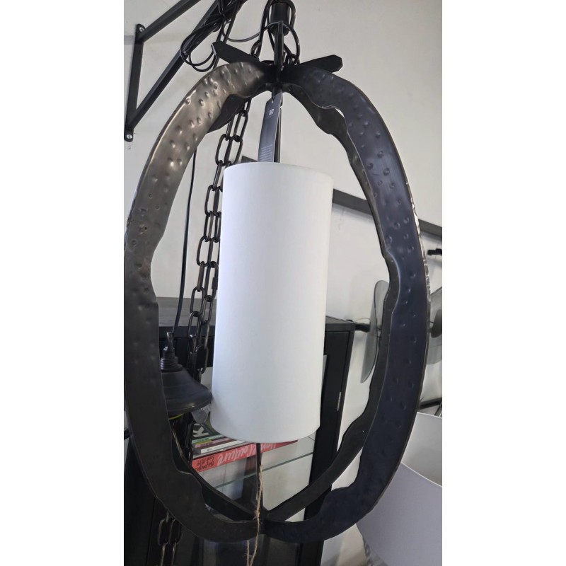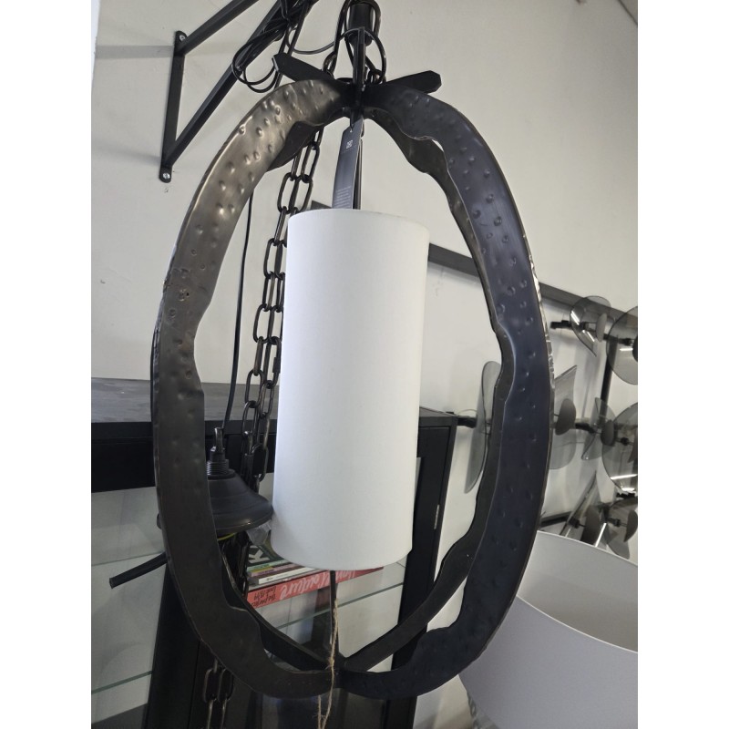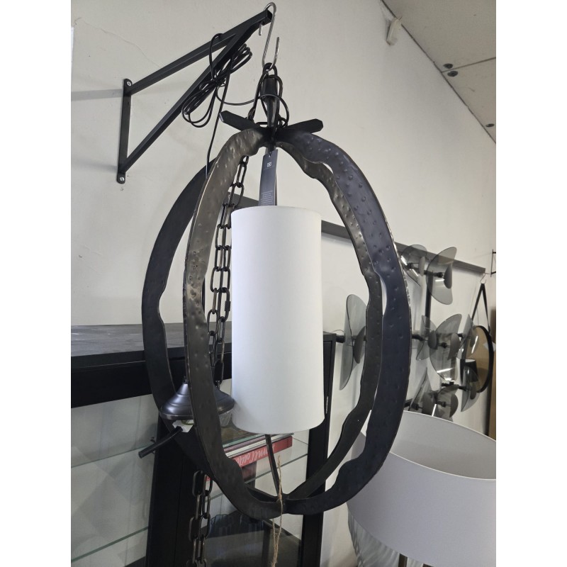 Żyrandol Luciano sprawi, że Twój przedpokój nabierze eleganckiego stylu. Żyrandol Luciano sprawi, że Twój przedpokój nabierze eleganckiego stylu. Chociaż jest on oparty na klasycznej latarni w kształcie kuli ziemskiej, ma czysty, nowoczesny wygląd dzięki ramie z młotkowanego brązu i rurkowemu białemu kloszowi. Żyrandol jest zawieszony na łańcuchu, dzięki czemu nadaje się do większości wysokości sufitów.