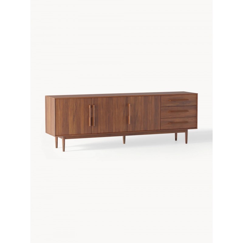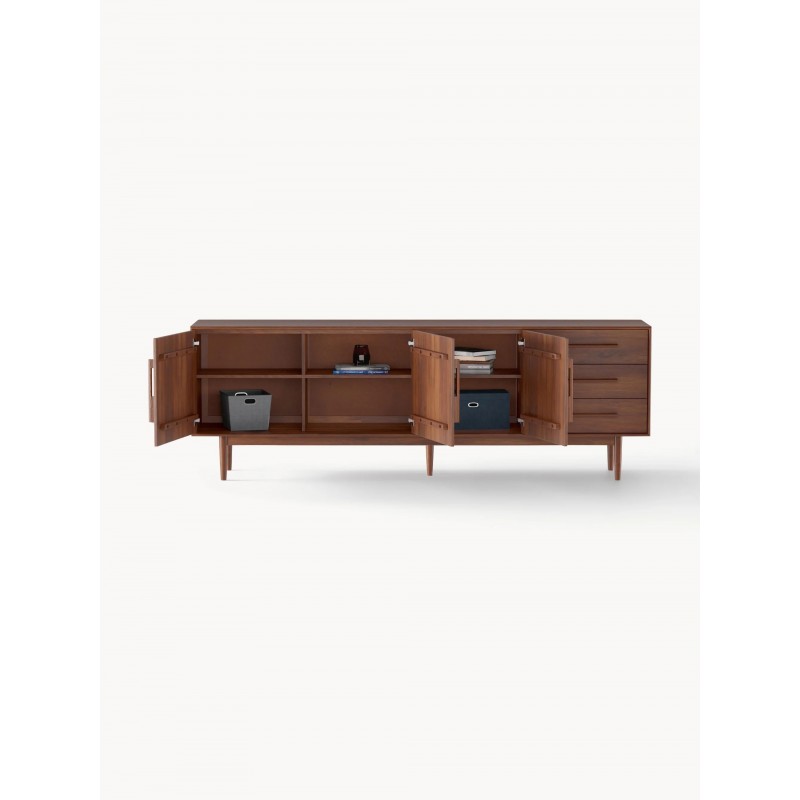 Komoda posiada 3 drzwi, 6 przegródek i 3 szuflady. Drzwiczki są wyposażone w mechanizm Soft-Close Wykonanie z materiałów pochodzenia naturalnego sprawia, że produkt może różnić się od przedstawionego na zdjęciu. Każdy jest unikatowy!