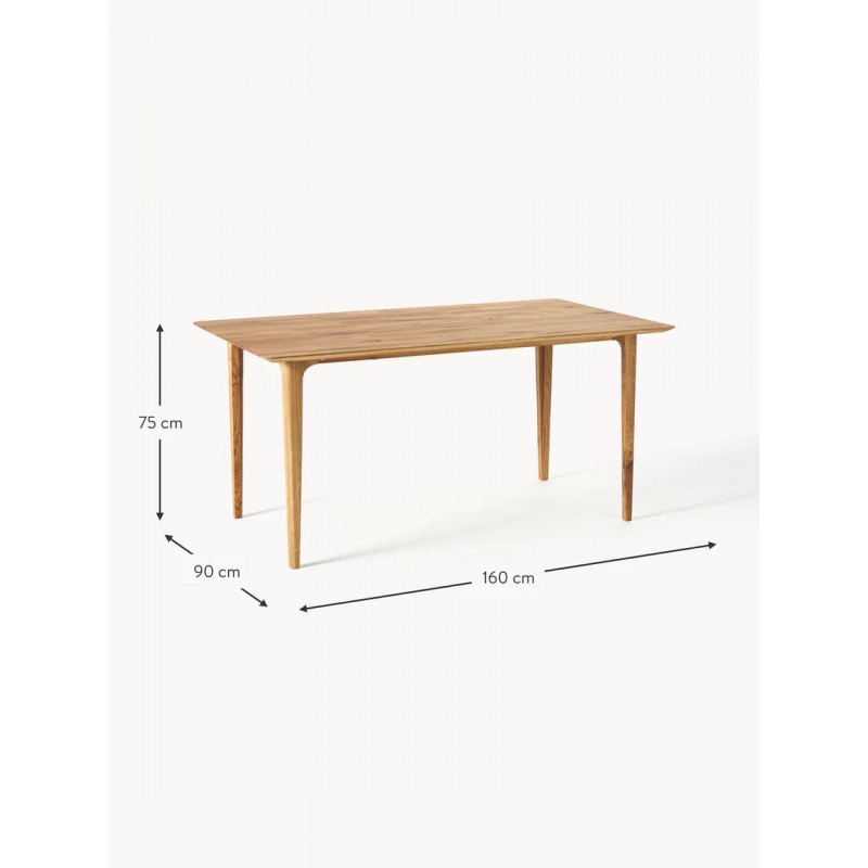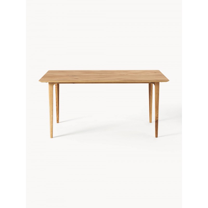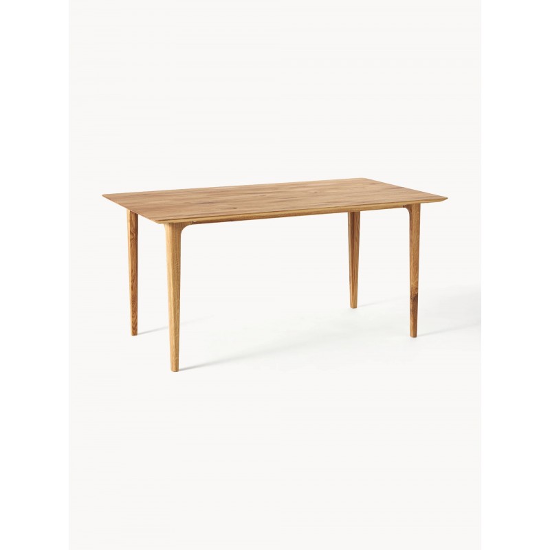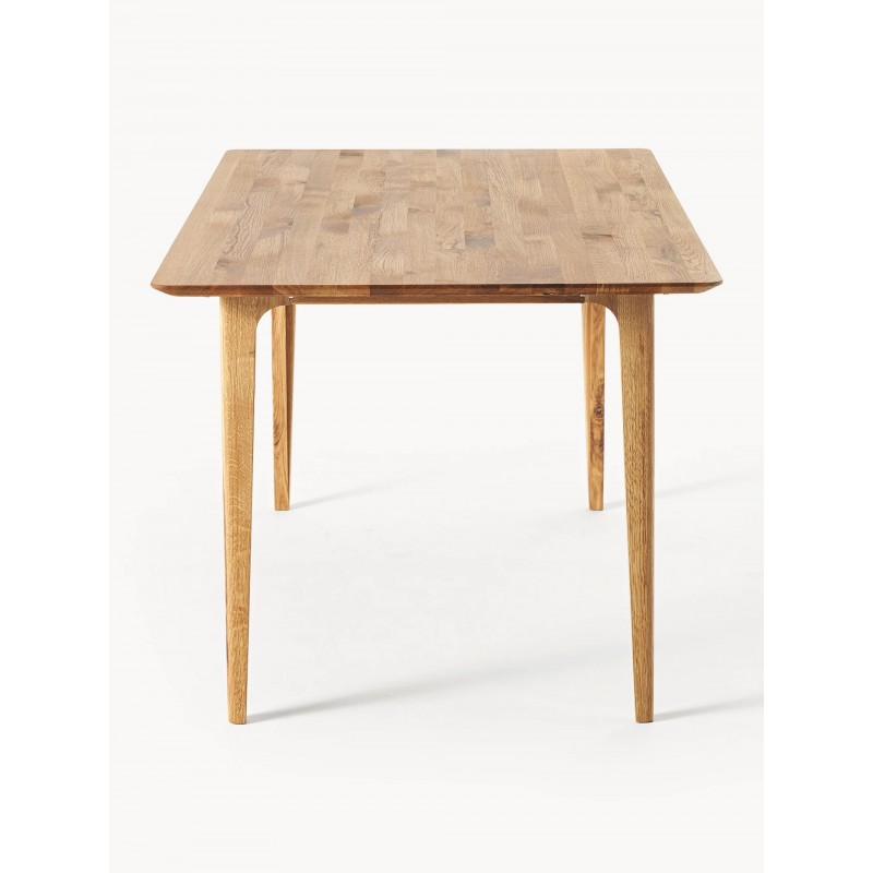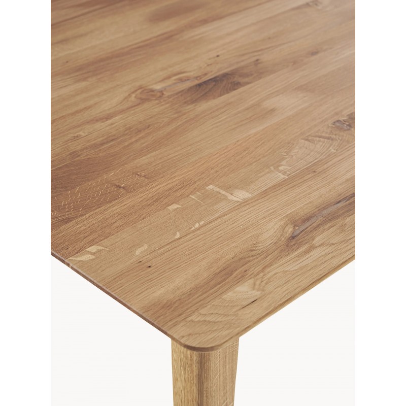 Model Archie zrobiony z litego drewna dębowego ma klasyczny prostokątny kształt i jest odpowiedni dla maksymalnie 6 osób. Fazowana krawędź blatu i zwężające się nogi nadają tej konstrukcji lekkości.