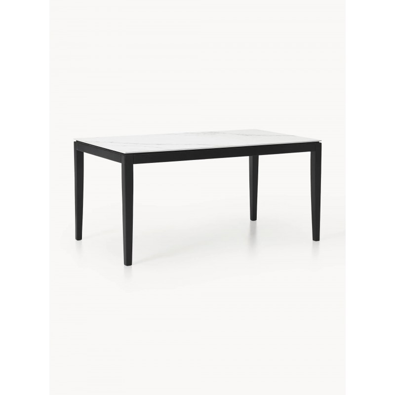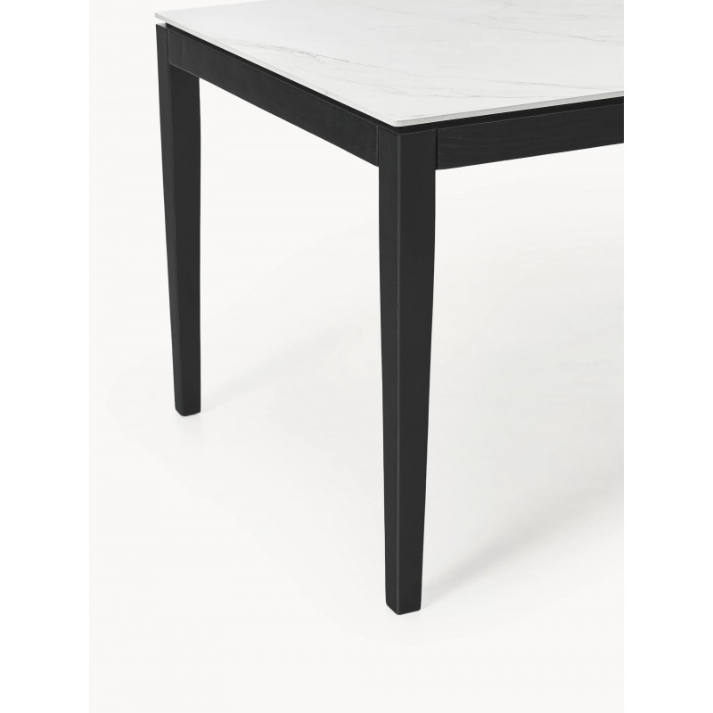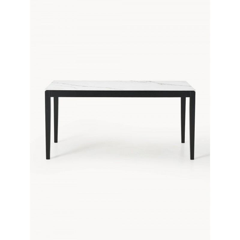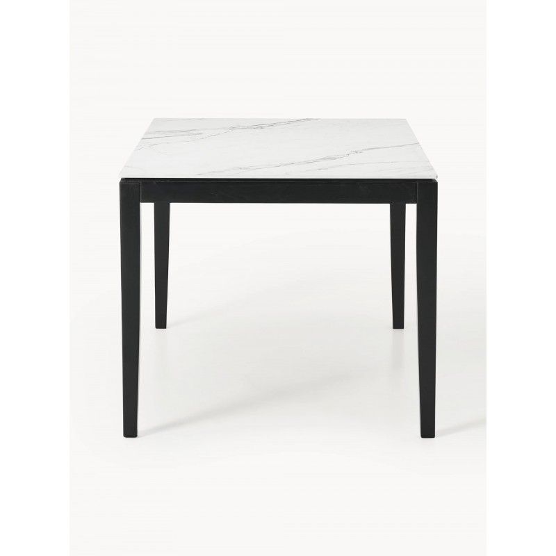 Blat: ceramiką o wyglądzie marmuru stabilizowana płytą pilśniową (MDF) Nogi i rama: lite drewno dębowe lakierowane