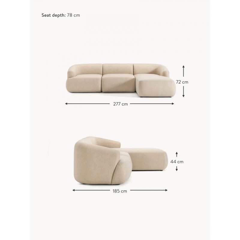 Sofa modułowa narożna Sofia prawostronna jasny beż 277x185 cm