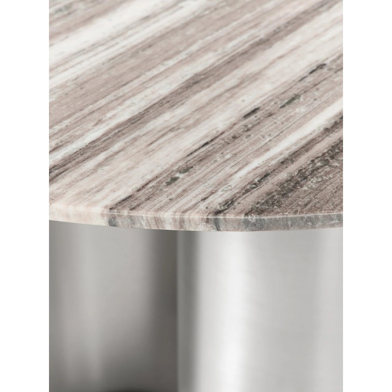Stół NOAM to designerska atrakcja! Jego elegancki, minimalistyczny wygląd doskonale współgra z nowoczesnym połączeniem materiałów. Wyrafinowany kontrast marmuru i szczotkowanego metalu sprawia, że NOAM przyciąga wzrok. Ten stół jest odpowiedni dla maksymalnie czterech osób.