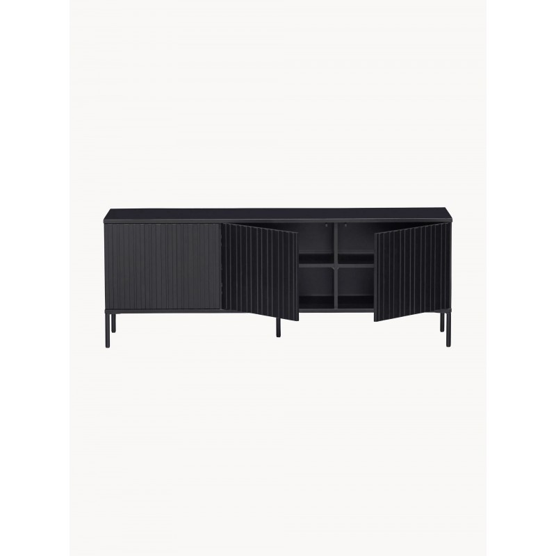 Szafka RTV z 6 przegrodami i 2 otworami na kable. Drzwi wyposażone są w mechanizm Push-To-Open, a swoim wyglądem nadają szafce nietuzinkowy i elegancki charakter. Wyprodukowano w Holandii
