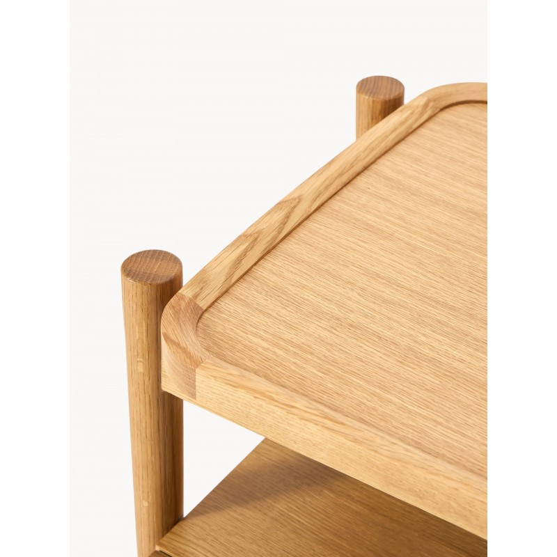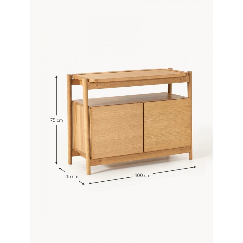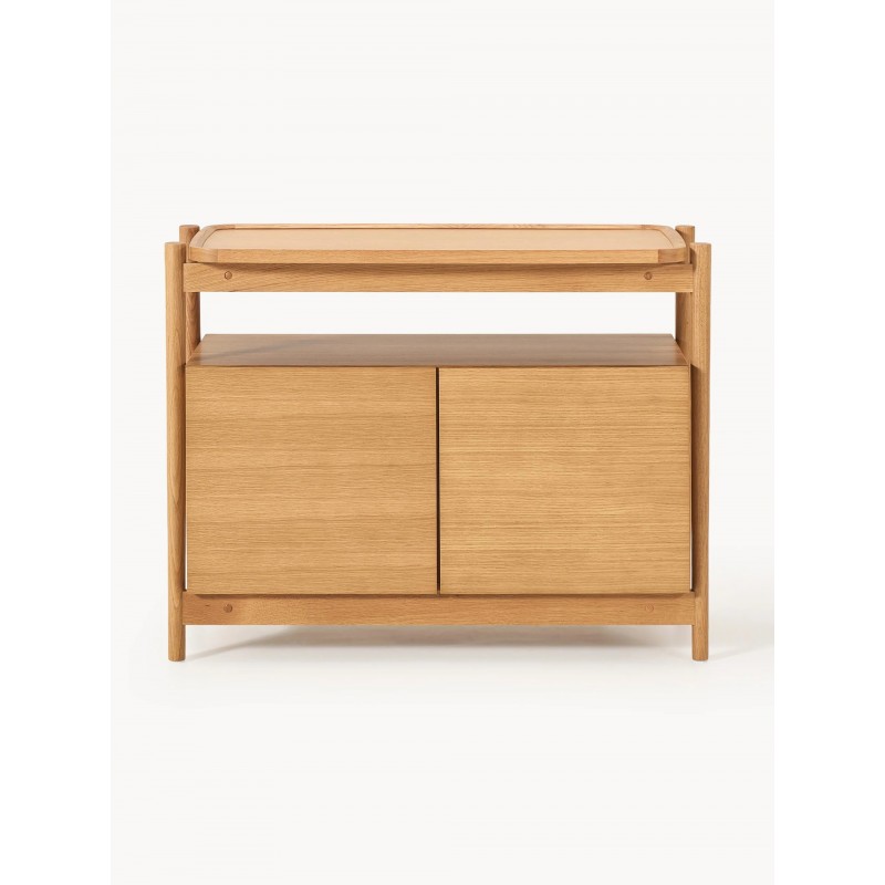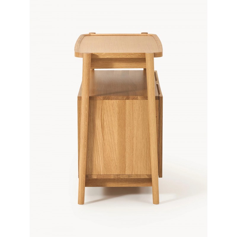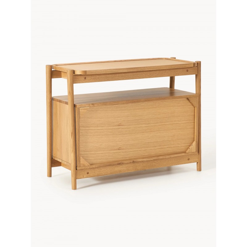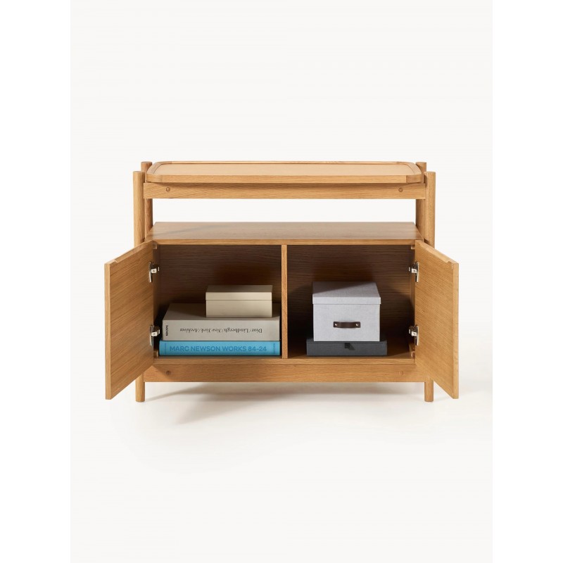 Stelaż, korpus: lite drewno dębowe Drzwi, fronty szuflad, półka: płyta pilśniowa (MDF), sklejka z fornirem dębowym