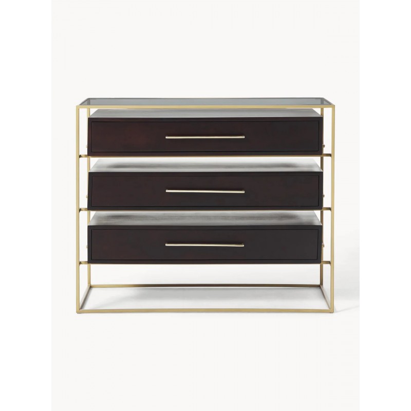 Szafka Lyle trzy szuflady szklany blat 100x82x45 cm