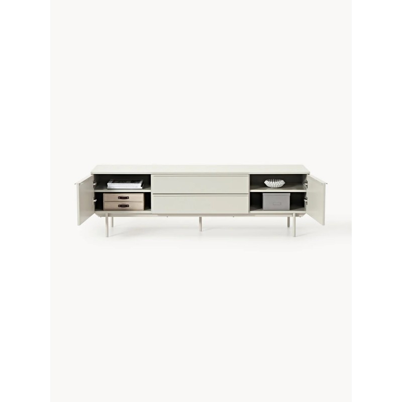 Wymiary całkowite: - szerokość 180 cm - wysokość 55 cm - głębokość 45 cm Wysokość nóg: 20 cm Wymiary szuflady: - szerokość 74 cm - wysokość 9 cm - głębokość 32 cm