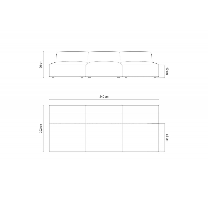 Szerokość siedziska 240cm Wysokość siedziska 40cm Głębokość siedziska 62cm Wysokość oparcia 33cm
