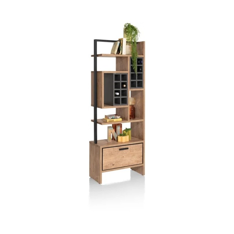 Ten parawan z kolekcji Pavarotti to idealny dodatek do Twojego wnętrza, jeśli dysponujesz ograniczoną przestrzenią, ale nadal chcesz wizualnie podzielić pokój na różne strefy. Parawan oferuje dużo miejsca na wino, liczne otwarte przegródki i praktyczną szufladę na dole. Jego unikalna konstrukcja obejmuje czarną metalową ramę, która rozciąga się wzdłuż jednego boku.