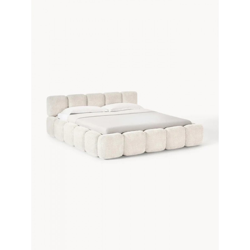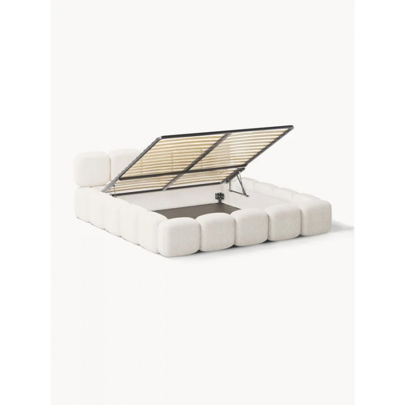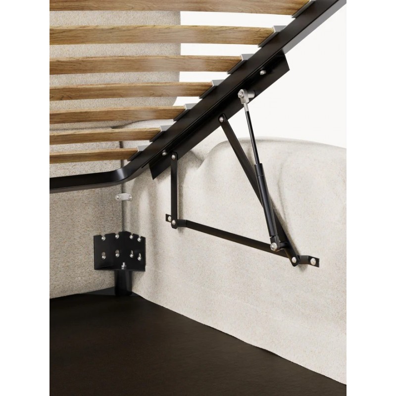 Tapicerowane łóżko posiada funkcję schowka.
