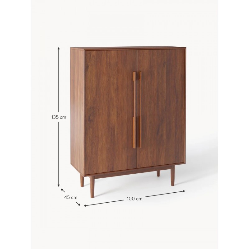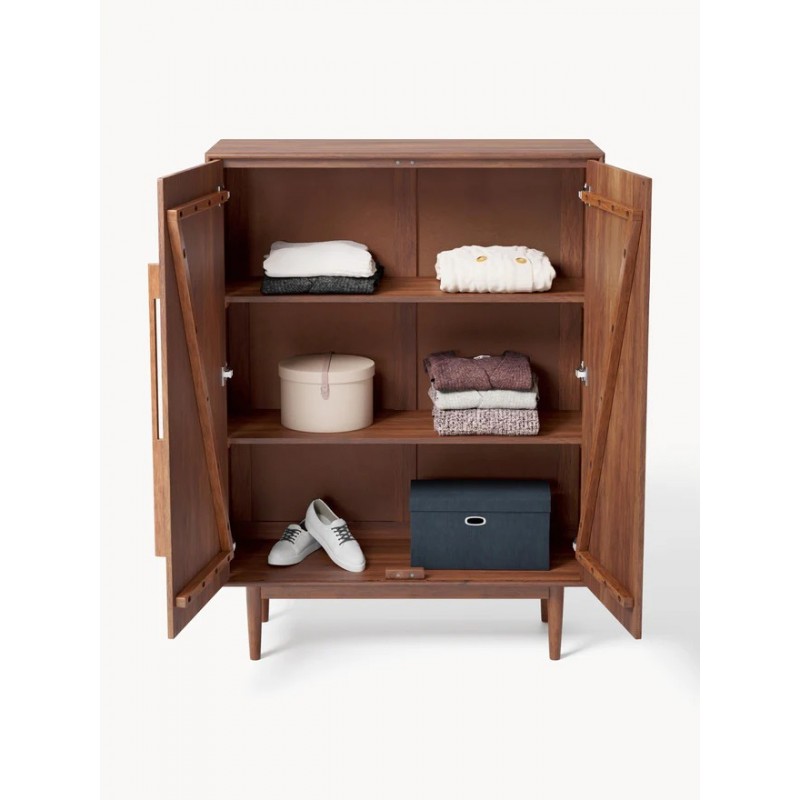 Dzięki PAUL design z połowy wieku spotyka się z nowoczesnym stylem życia. Starannie wykonane detale, eleganckie ciemne drewno i delikatne, zwężane nogi wnoszą do Twojego domu ponadczasowy styl lat 50. - funkcjonalny, stylowy i bez wysiłku wyrafinowany. Komoda posiada 2 drzwiczki i 3 przegrody. Półki mają regulowaną wysokość, dzięki czemu idealnie dopasują się do Twoich potrzeb. Drzwi wyposażone są w mechanizm Soft-Close.