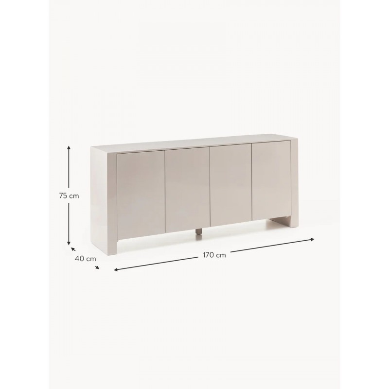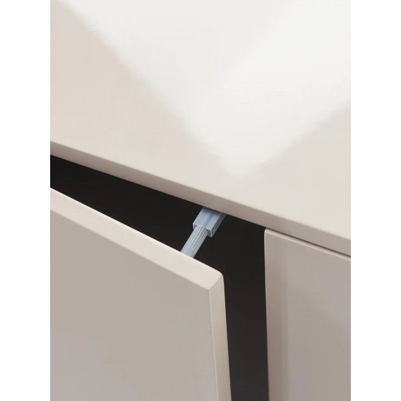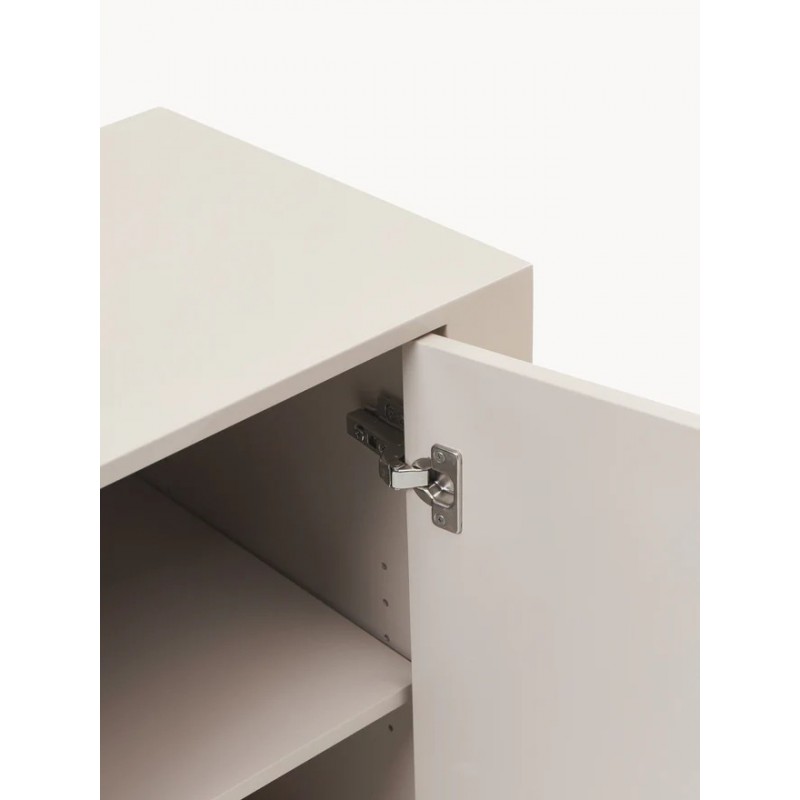 Komoda z czterema przegrodami. Półki z możliwością regulacji wysokości, dzięki czemu dopasowują się do Twoich indywidualnych potrzeb. Drzwi posiadają mechanizm Soft-Close oraz mechanizm Push-To-Open.