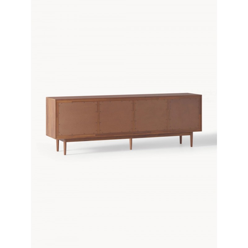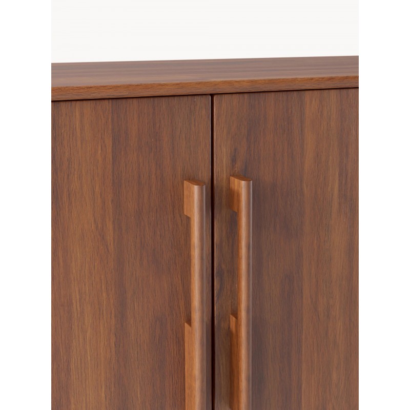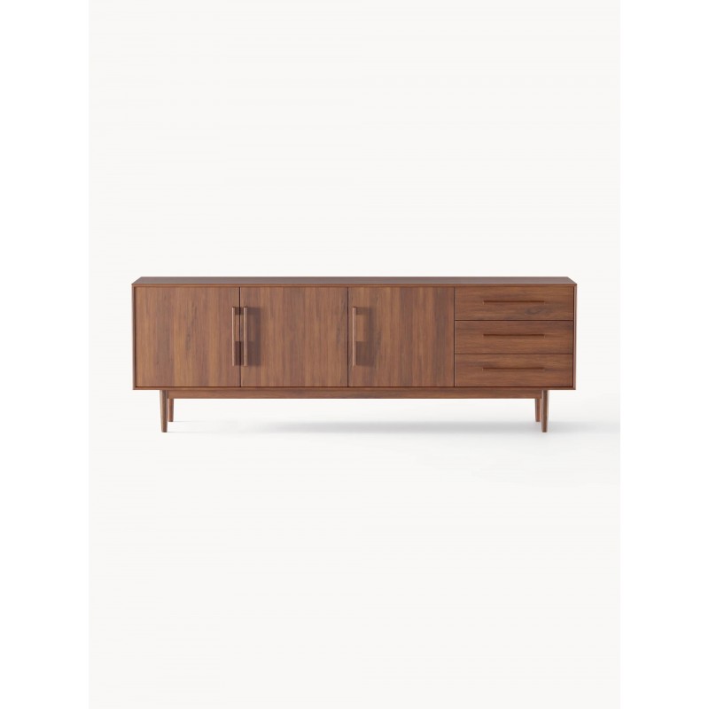 Dzięki PAUL design z połowy wieku spotyka się z nowoczesnym stylem życia. Starannie wykonane detale, eleganckie ciemne drewno i delikatne, zwężane nogi wnoszą do Twojego domu ponadczasowy styl lat 50. - funkcjonalny, stylowy i bez wysiłku wyrafinowany. Komoda posiada 3 drzwiczki 6 przegród 3 szuflady . Drzwi wyposażone są w mechanizm Soft-Close.
